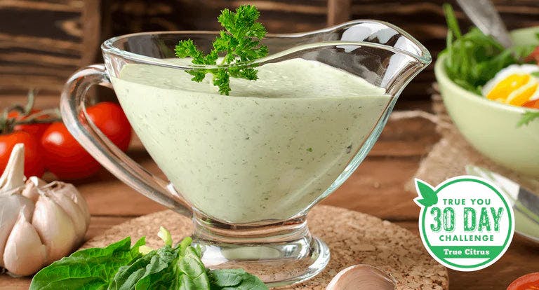 This green cream sauce can be used as a dip, or as a sauce for fish or chicken. Drizzle over salads or bowls too!