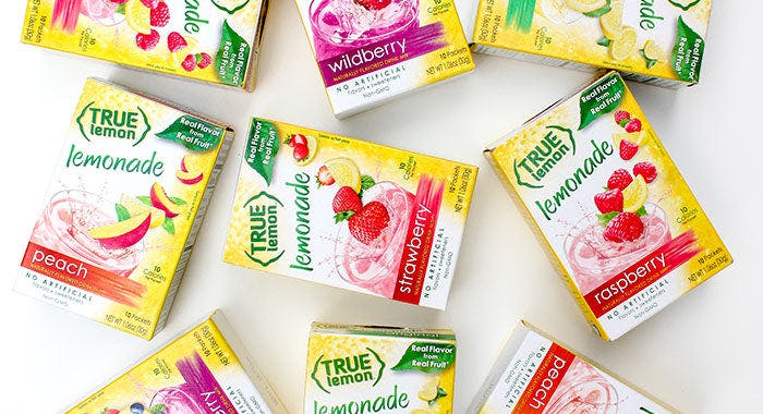 Drink more water deliciously with the fresh-squeezed taste of True Lemon and award-winning True Lemon Lemonades. Made with simple and clean ingredients, True Lemon Drink Mixes have only 10 calories per serving, are gluten free, non GMO, and contain no artificial flavors or preservatives.